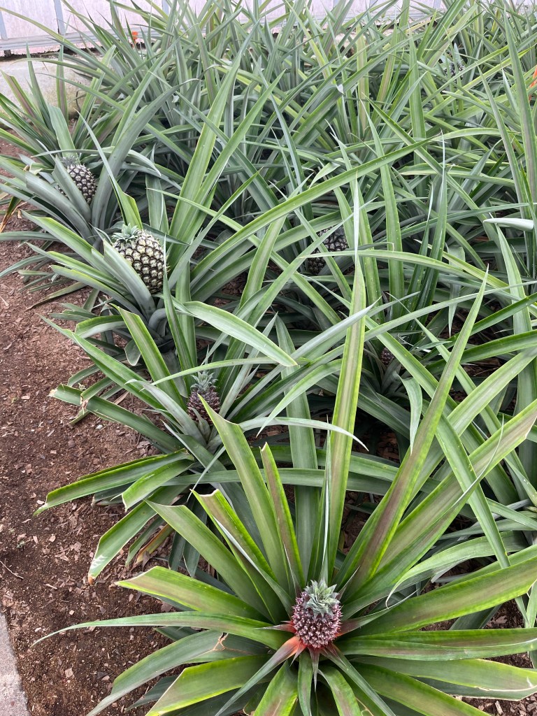 Did you know that a pineapple plant produces only one pineapple? And that it takes 2-2.5 years to grow that fruit to harvest? The plant must be dug up and transplanted 3 times during its life.
